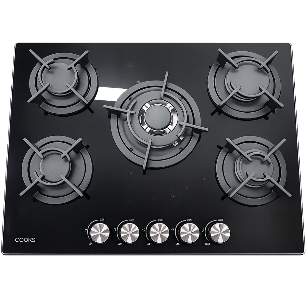 La plaque de cuisson à gaz COOKS PG7051G-AC4B allie performance et design moderne avec sa surface en verre trempé noir élégante et facile à nettoyer. Équipée de 5 feux, dont un brûleur central puissant idéal pour les grandes préparations, elle permet de cuisiner plusieurs plats simultanément avec précision. Ses grilles robustes assurent une excellente stabilité des casseroles et poêles. Les commandes frontales ergonomiques offrent un réglage précis de la flamme pour une cuisson maîtrisée. Pratique et performante, elle s’intègre parfaitement dans les cuisines contemporaines.