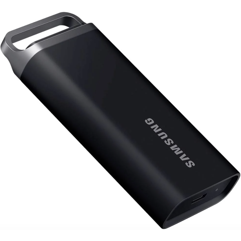 Disque dur externe (portable) SSD Samsung T5 Evo MU-PH2T0S - Capacité de stockage : 2 To - Interface : USB 3.2 Gen 1 (USB-C connecteur) - Algorithme de chiffrement : AES 256 bits - Couleur : Noir - Largeur : 4 cm - Profondeur : 1.7 cm - Hauteur : 9.5 cm - Poids : 102 g - EAN : 8806094905403.