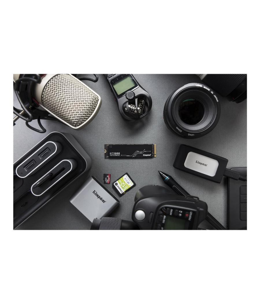 | Kingston KC3000 PCIe 4.0 NVMe M.2 SSD garantit une performance de niveau supérieur avec le nouveau contrôleur NVMe Gen 4x4 et NAND 3D TLC. Améliorez le stockage et la fiabilité de votre système afin de répondre aux exigences des charges de travail et de vivre une meilleure expérience avec les applications et des activités telles que le rendu 3D ou la création de contenu 4K+. Avec des vitesses formidables pouvant atteindre 7 000 Mo/s en lecture et en écriture, il garantit l'amélioration du flux de travail dans les PC de bureau et portables ultra-performants, ce qui en fait le SSD idéal pour les utilisateurs intensifs qui veulent les vitesses les plus rapides sur le marché. | |