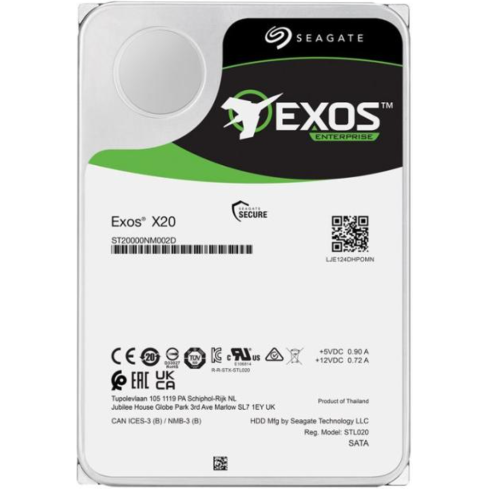 Seagate Exos X20 ST18000NM000D - Disque dur - 18 To - interne - SAS 12Gb/s - 7200 tours/min - mémoire tampon : 256 Mo