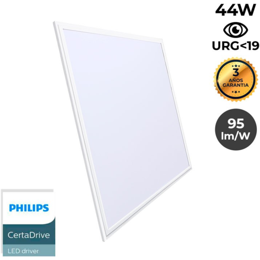 Panneau LED Philips conçu pour une installation encastrée dans les plafonds suspendus - Offre une puissance d’éclairage de 44W - Affiche un design extra plat qui s’adapte parfaitement à tout type d’intérieur - Mesure 60 de long, 60 cm de large pour une hauteur de 6 mm - Propose un rendu lumineux blanc froid 6000K- Favorise un usage économique de l’énergie grâce à sa classe énergétique F - Assure un allumage immédiat et une répartition uniforme de la lumière, sans scintillement ni variations d’intensité grâce à son driver Philips de haute qualité - Convient pour les bureaux et les espaces de travail - Offre un éclairage homogène et efficace grâce à son angle de diffusion de 120° - Dispose d’une longévité de 25000 heures.