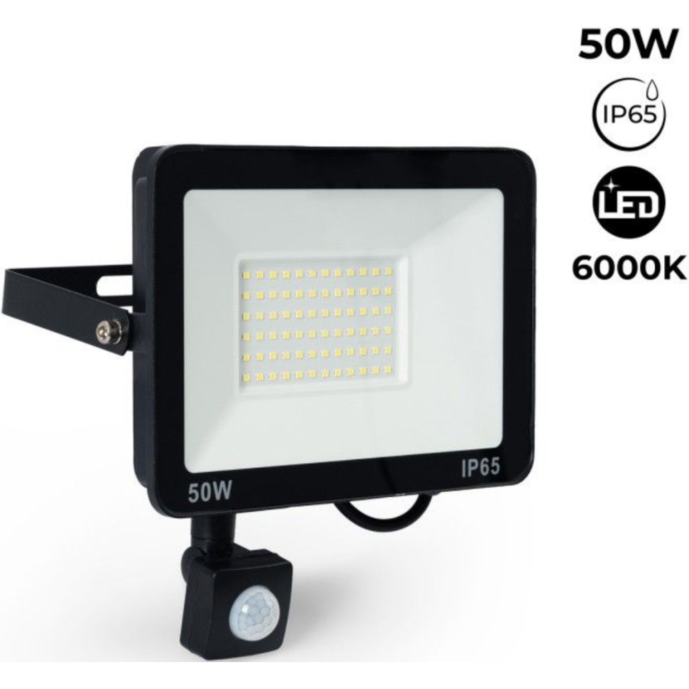 Projecteur LED d’extérieur mesurant 100 mm de long, 80 mm de large et 30 mm d’épaisseur - Doté d’une puissance de 50 W - Diffuse une lumière blanc froid 6000k suffisante pour éclairer de grands espaces extérieurs comme les jardins, les terrasses et les patios - Convient également pour renforcer l’éclairage extérieur lors d’évènements en plein air - Coloris noir -Structuré avec un boîtier en aluminium disposant d’un indice d’étanchéité IP65 pour garantir une haute résistance à la poussière et à l’eau - Convient pour un usage à long terme grâce à sa durée de vie de 25000 heures - Convient pour une installation électrique incluant une tension nominale de 230 V AC - Diffuse un éclairage intense et durable via son diffuseur en verre.
