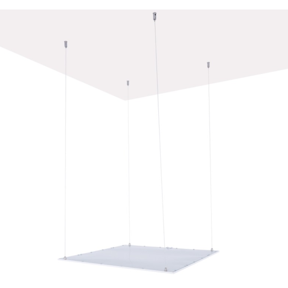 Kit de suspension pour panneau LED Slim - Propose un design réglable en hauteur pour les dalles extra-plates - Fourni avec 4 câbles en acier réglables jusqu’à 1 mètre de hauteur et tous les accessoires essentiels comme des vis de fixation, des attaches, ces ancres et plafond et bien d’autres - Offre une installation facile qui permet de suspendre les panneaux LED au plafond tout en ajustant la hauteur selon vos préférences - S’adapte parfaitement à tous les modèles de dalles LED encastrables - Convient pour les environnements professionnels ou résidentiels modernes.