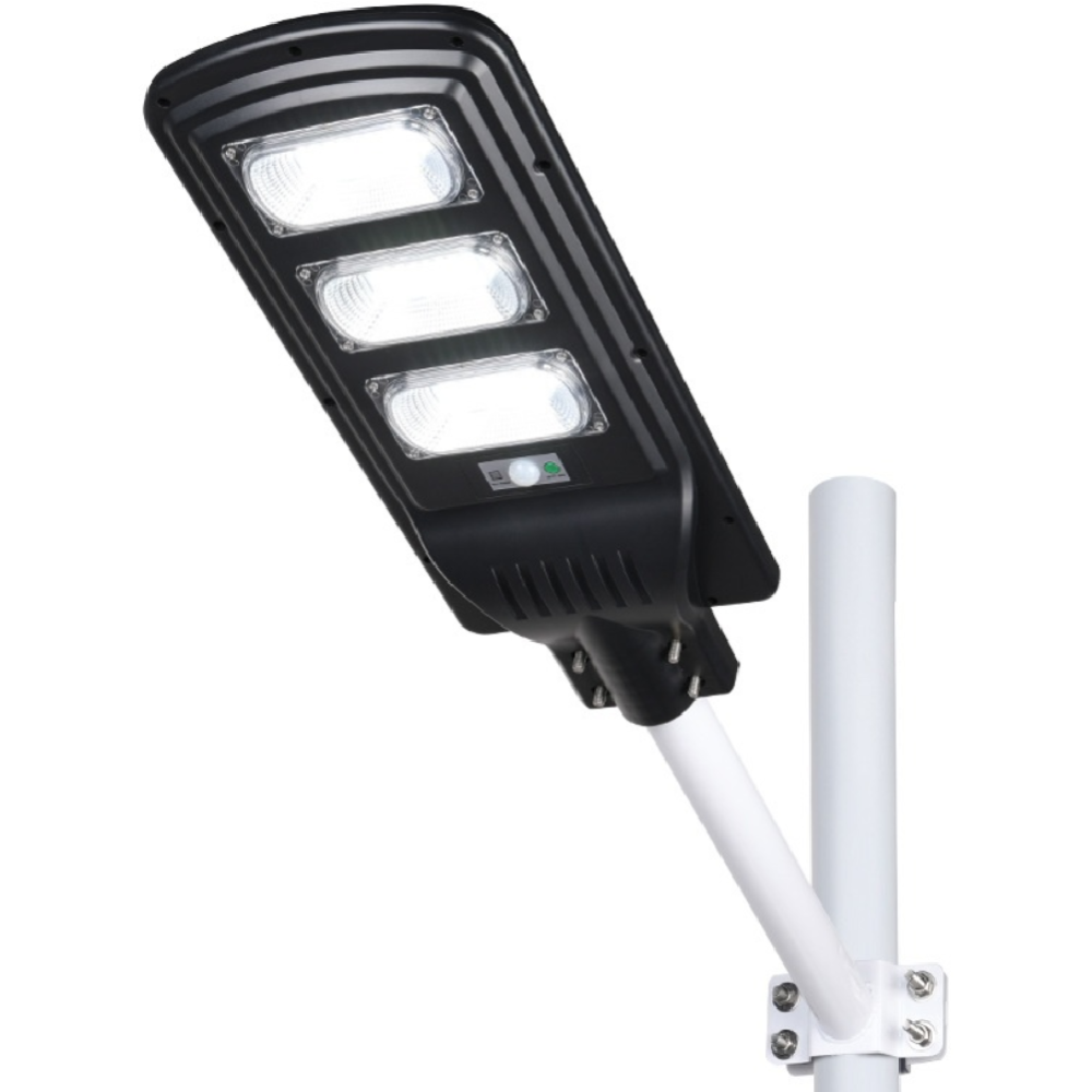 Lampadaire de rue solaire pour un éclairage de qualité qui dure toute la nuit - Se recharge complètement en 6 voire 8 heures et offre une autonomie de 16 heures en fonctionnement continu - S'allume la nuit et s'éteint automatiquement le jour - Bénéficie d'un détecteur de mouvement - Est équipé d'une télécommande qui permet d'allumer et d'éteindre en toute liberté le lampadaire, mais aussi de programmer l'éclairage sur un nombre d'heure bien défini - Certifié IP65, donc étanche et peut être installé en toute sécurité à l'extérieur - Puissance 300Watts - Coloris noir.