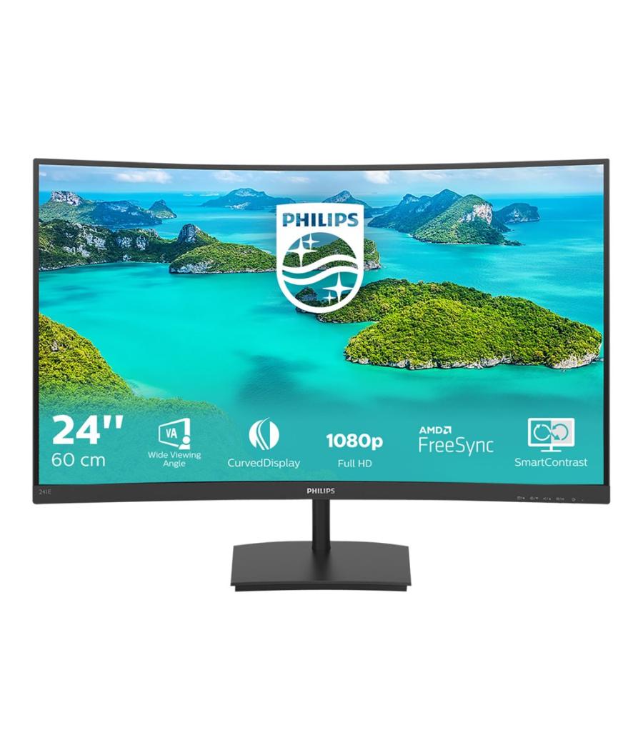 Philips E-line 241E1SCA - Écran LED - incurvé - 24" (23.6" visualisable) - 1920 x 1080 Full HD (1080p) @ 75 Hz - VA - 250 cd/m² - 3000:1 - 4 ms - HDMI, VGA - haut-parleurs - noir texturé
