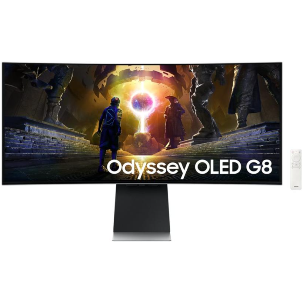 Samsung Odyssey OLED G8 S34DG850SU - G85SD Series - moniteur OLED - Intelligent - jeux - incurvé - 34" - 3440 x 1440 UWQHD @ 175 Hz - 250 cd/m² - 1000000:1 - HDR10+ Gaming, HDR10+, HDR10 - 0.03 ms - 2xHDMI, DisplayPort - haut-parleurs - argent