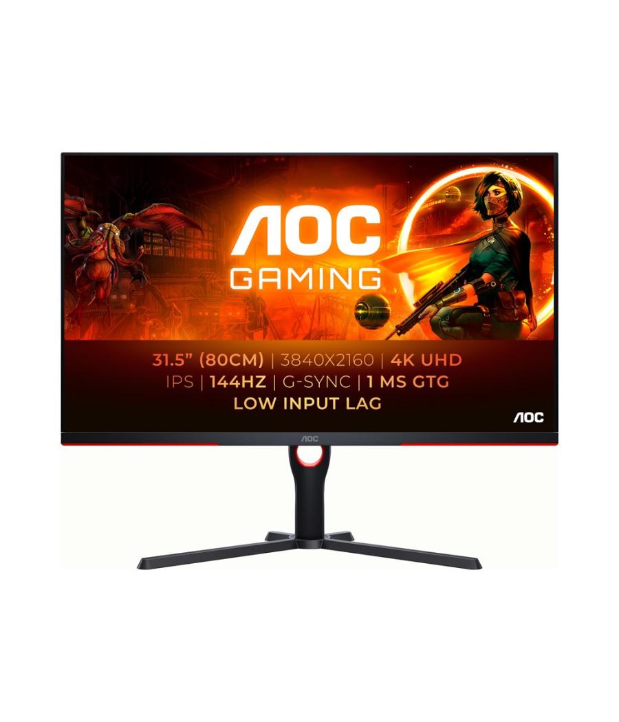 AOC Gaming U32G3X/BK - Écran LED - jeux - 32" (31.5" visualisable) - 3840 x 2160 4K UHD (2160p) @ 144 Hz - IPS - 1000:1 - 1 ms - 2xHDMI, 2xDisplayPort - haut-parleurs - noir, rouge