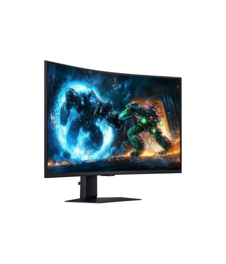Écran PC Samsung S32CG552EU Odyssey G55C - Écran : 32" VA, Quad HD (2560 x 1440), 165 Hz, HDR10 - Taux de contraste : 2500:1, luminosité 300 cd/m² - Temps de réponse : 1 ms, technologie sans scintillement - Format : 16:9, incurvé (1000R) - Ergonomie : Inclinaison -2° à 18°, montage VESA (75x75 mm) - Son & multimédia : Pas de haut-parleurs, micro ni caméra - Réseau : Pas de WiFi ni Ethernet - Consommation : 33,2 W (typique), 0,5 W (veille), classe énergétique G - Dimensions & poids : 710,1 x 533,6 x 272,6 mm (avec support), 5,2 kg.
