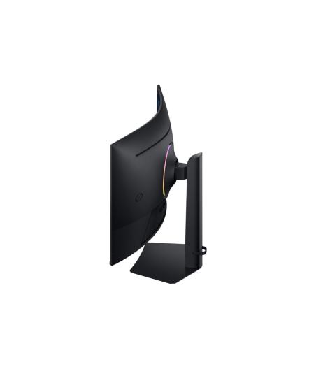 Écran PC Samsung Odyssey G5 LC34G55TWWPXEN - Écran incurvé 34" UltraWide Quad HD (3440 x 1440) - Courbure 1000R, contraste 2500:1, HDR10 - Angles de vision 178° (horizontal/vertical) - Modes gaming : FPS, RPG, RTS, Screen Size Optimizer, Super Arena Gaming UX - Connectique : 1x HDMI 2.0, 1x DisplayPort 1.4, sortie casque - Inclinaison ajustable (-2° à 18°), fixation VESA 75x75 mm - Consommation typique 32,4 W, classe énergétique G (SDR/HDR) - Dimensions (sans support) : 806,6 x 380,9 x 152,7 mm, poids 5,2 kg - EAN : 8806094796315.