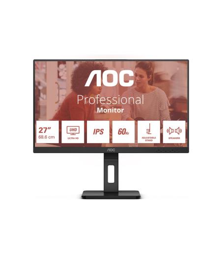 AOC Essential-line U27E3UF - ?cran LED - 27" - 3840 x 2160 4K UHD (2160p) @ 60 Hz - IPS - 350 cd/m? - 1000:1 - 4 ms - 2xHDMI, DisplayPort - haut-parleurs - noir