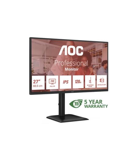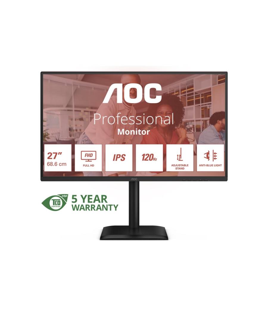 AOC 27E4U - ?cran LED - 27" - 1920 x 1080 Full HD (1080p) @ 120 Hz - IPS - 300 cd/m? - 1500:1 - 4 ms - HDMI, VGA, DisplayPort - haut-parleurs - noir