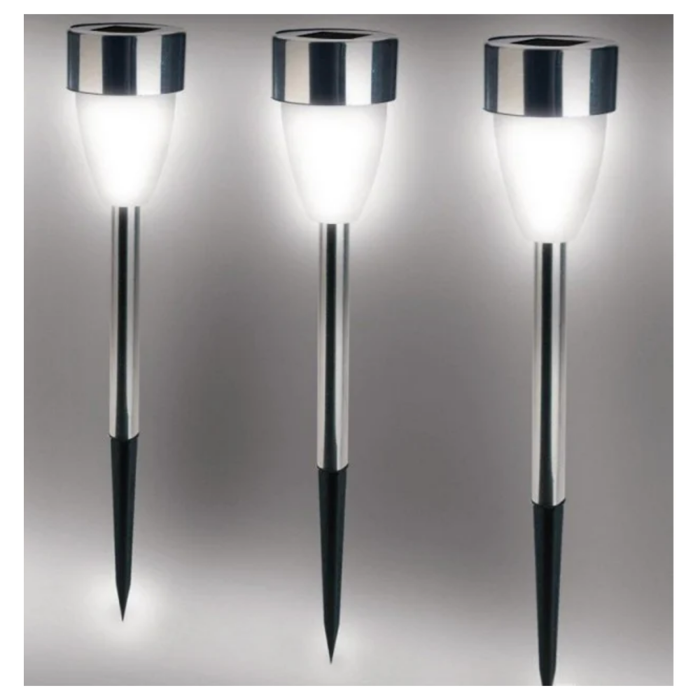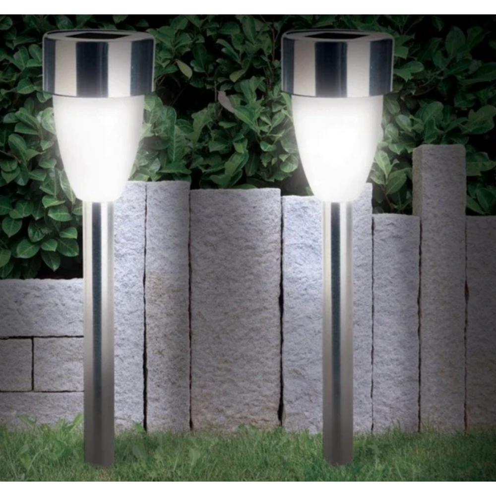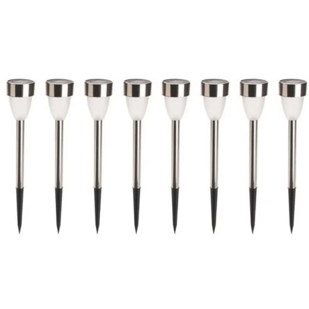 Lot de 8 lampes tulipes solaires led. Ce lot de 8 lampes led est idéal pour baliser votre jardin. Leur éclairage de couleur blanche est du meilleur effet à la tombée de la nuit. Illuminez vos extérieurs grâce à ces lampes en forme de tulipe ! informations techniques. Set de 8 pièces. Lampes solaires forme tulipe. Diamètre. 5,5 cm x h. 36 cm. Batterie : ni-mh, pile bouton 1,2 v. 40mah / 200mAh. Interrupteur : on / off. 1 led blanche.
