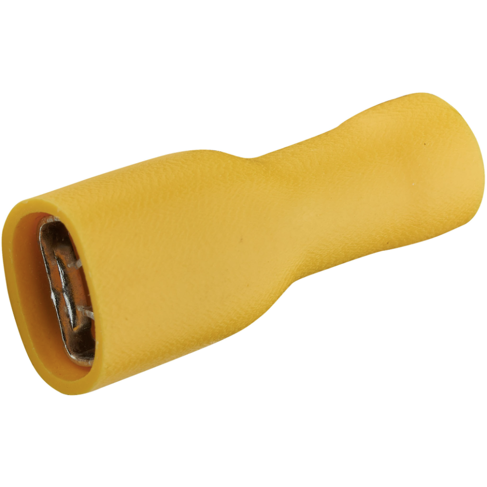 Lot de 10 clips femelle pré-isolés - Marque : DEBFLEX - Référence : 711044 - Dimensions : 6,3 x 0,8 mm - Compatible avec câbles de 2,5 mm² à 6 mm² - Couleur : Jaune - EAN : 3142187110442.