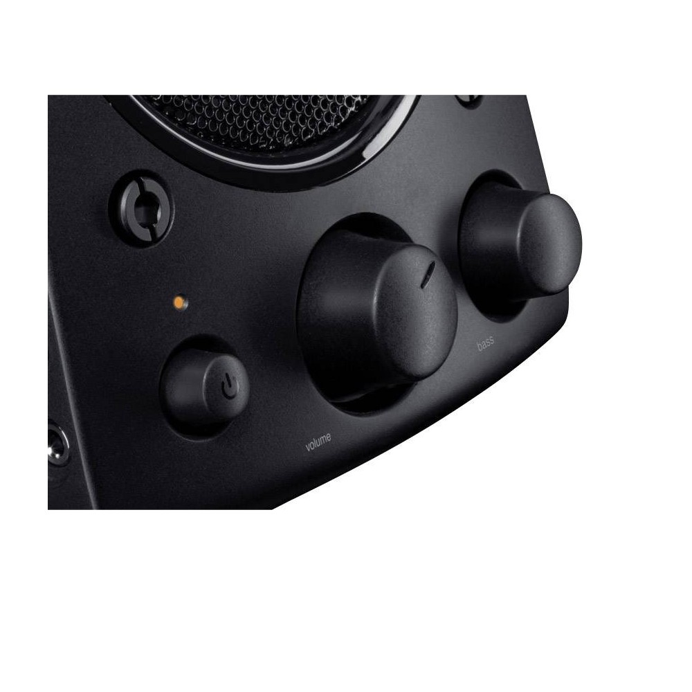 Haut-parleurs stéréo Logitech Z200 – Enrichissez votre musique et vos films avec un son riche et ample - Réglez facilement le niveau des basses et le volume avec les commandes situées sur le haut-parleur droit - Tournez la molette de réglage de la tonalité, située sur le côté des haut-parleurs multimédia, pour augmenter les graves.