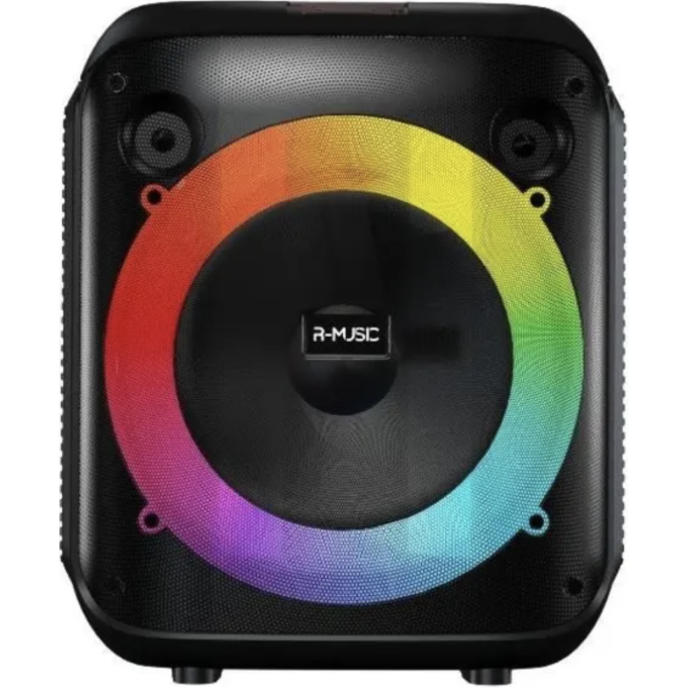 Enceinte sans fil R-Music Boost S - Connectivité : Bluetooth 5.3 - Fonctions audio : réglage des graves et des aigus - Effets lumineux : jeux de lumière RGB - Mode : karaoké intégré - Accessoires : microphone filaire inclus - Couleur : noir - EAN : 3760206484529.