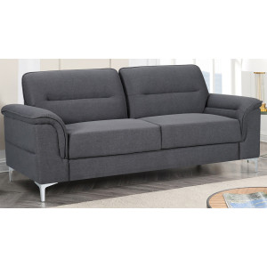 Grand canapé d'angle Garren gris en bois d'eucalyptus et contreplaqué avec pieds en métal - Mousse pure avec une densité de 23kg/m3 - Dimension (LxlxH) 253x168x86cm