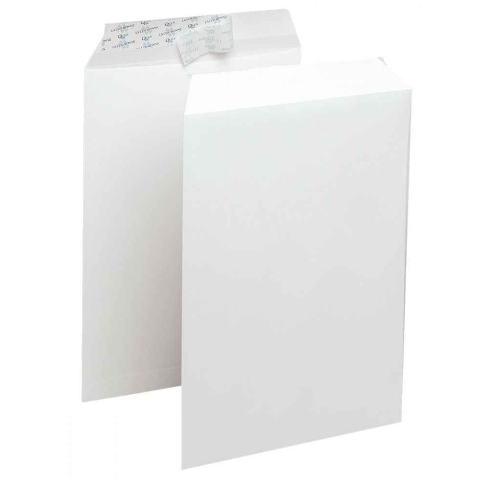 Boîte de 250 pochettes, Vélin blanc, 90 g, 22.9 x 32.4 cm. Auto adhésive avec bande de protection enlevable. Reconnu pour le velouté de son toucher, le vélin blanc est le support traditionnel de la correspondance personnalisée. Le vélin blanc supérieur présente toutes les caractéristiques techniques d'imprimabilité, à savoir : le lissé, l'opacité, la main, qui vont de pair avec l'aspect uni et la blancheur.