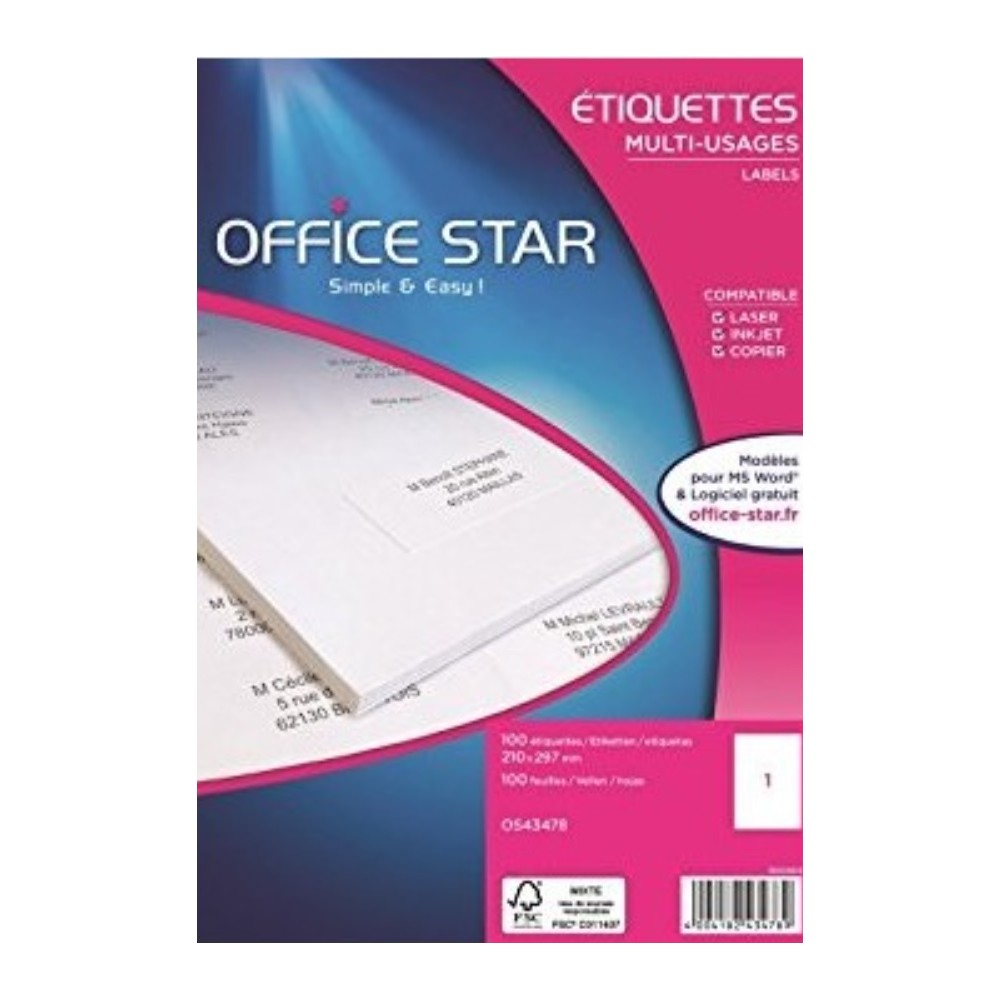Boite de 100 étiquettes multifonctions blanches, compatibles toutes marques d'imprimantes. Étiquettes compatibles imprimantes jet d'encre, laser et copieurs.
