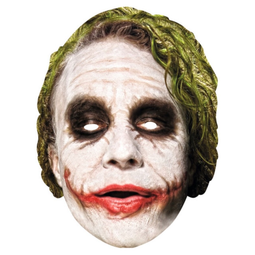 Masque Carton Joker Batman. Joker est le plus grand ennemi de Batman. C'est un personnage unique en son genre et très difficile à cerner. Il ressemble à la fois à un clown et à un bouffon du roi. Incarnez le célèbre vilain de Batman : Le JOKER grâce à ce masque pour adultes. Ce masque est en carton et sera maintenu à votre visage à l'aide d'un élastique.