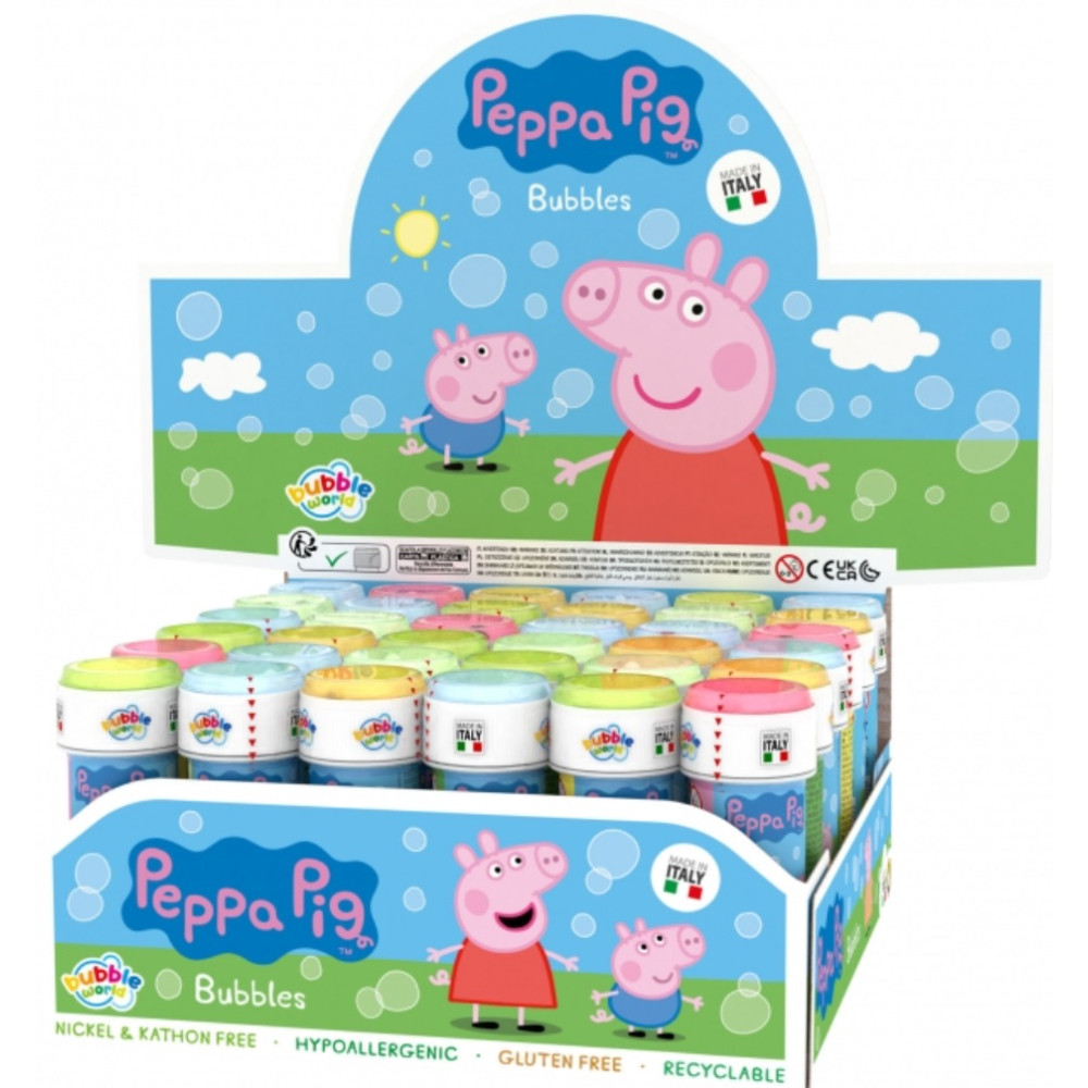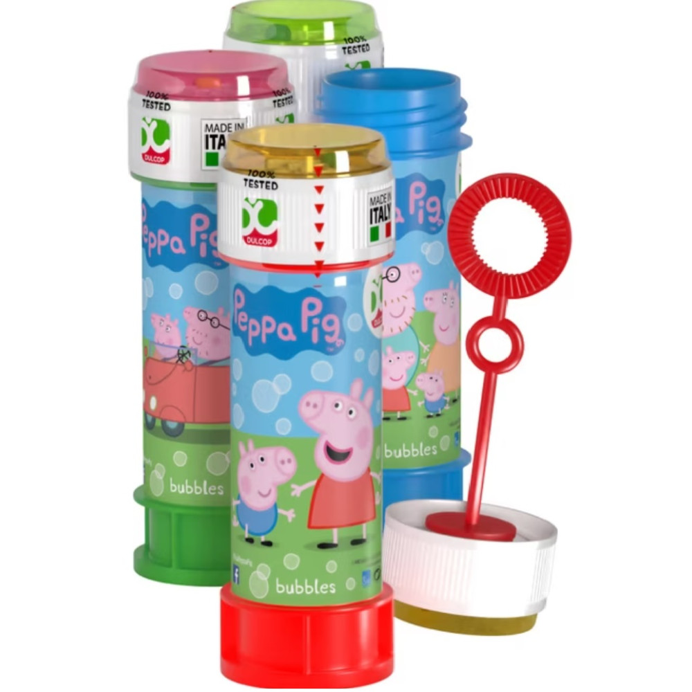Que c'est amusant de faire des bulles, surtout avec ton tube à bulle avec tes cochons préférés du dessin animé de Peppa Pig - Âge requis : dès 3 ans - Attention : Ce produit faisant partie d’un assortiment de plusieurs modèles, il nous est impossible de vous livrer un modèle ou un coloris précis - En commandant cet article, vous acceptez donc de recevoir un modèle en fonction de notre stock disponible - Vendu à l'unité.