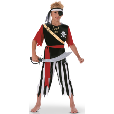 Déguisement pirate enfant (3–4 ans) Taille S - Marque : Rubie's - Contenu : Top imprimé rouge et noir, Pantalon rayé noir et blanc, Bandeau rayé noir et blanc, Ceinture rouge en tissu - Accessoires non inclus : Sabre, cache-œil - Packaging : Housse - Thème : Déguisement entrée de gamme - EAN : 3527079072105.