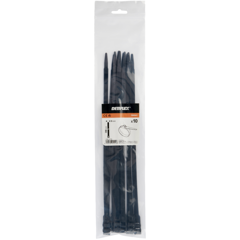 Sachet de 10 colliers autoblocants - Marque : Debflex - Référence : 709041 - Couleur : Noir - Dimensions : 9 x 260 mm - EAN : 3142187090416.