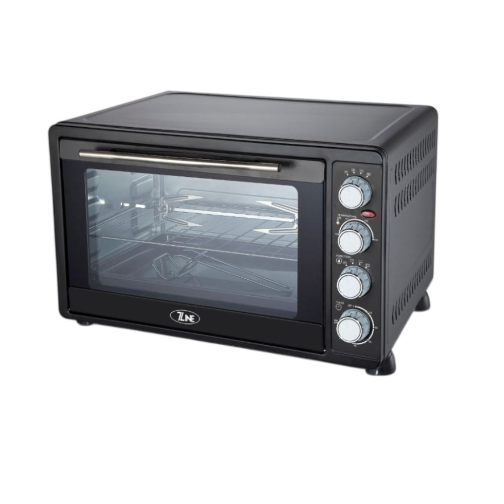Four à poser 7LINE TS-60N 60L 2200W noir - Puissance: 2200W - Capacité: 60 Litres - Type: Four - Minuterie: 60 m - Caractéristiques: Avec convection + rôtisserie, Norme A13, Isolation renforcé, Sélecteur de température 100°C-230°C - Voltage: 220-240V / 50hZ.