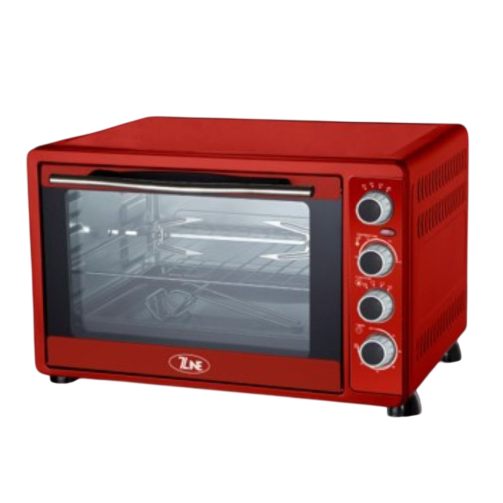 Four à poser 7LINE TS-60R 60L 2200W rouge - Puissance: 2200W - Capacité: 60 Litres - Type: Four - Minuterie: 60 m - Caractéristiques: Avec convection + rôtisserie, Norme A13, Isolation renforcé, Sélecteur de température 100°C-230°C - Voltage: 220-240V / 50hZ.