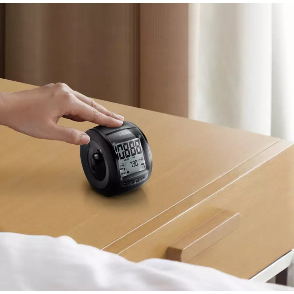 Pour que chaque journée soit unique, optez pour ce radio-réveil Philips - Sa particularité : il projette l'heure sur n'importe quelle surface - Vous n'avez qu'à ouvrir les yeux pour voir l'heure ! La matinée ne peut pas mieux commencer !