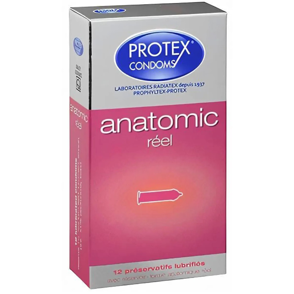 Préservatifs Protex Anatomic Réel ajustés au plus près du contour réel du pénis - Dotés d'un réservoir - Épousent la forme et adhèrent parfaitement au galbe du pénis pour procurer plus de plaisir et de sensation pour les deux partenaires - Lubrifiés au diméthicone - Texture lisse - L'idéal pour ceux qui cherchent des sensations intactes tout en se protégeant efficacement.