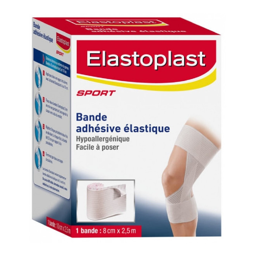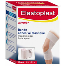 Bande adhésive élastique Elastoplast utilisée dans les pansements pour fixer les compresses, les attelles et également pour des strappings ou de la contention souple - Constituée d'un support tissé en coton et ne contient pas de latex naturel - Garantit une adaptation parfaite aux mouvements grâce à son élasticité, sa bonne longueur de 2.5 mètres et son épaisseur de 8 cm - Laisse respirer la peau - Dispose d'un film protecteur qui permet de décoller la bande progressivement afin de faciliter sa pose sur les articulations ou les muscles.