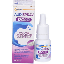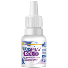 Gouttes auriculaires AUDISPRAY Dolo - Contenance : 7g - Soulagent les douleurs et inflammations du conduit auditif, avec du glycérol pour protéger et dégonfler le conduit, et de la lidocaïne pour atténuer les douleurs - Instructions : Se laver les mains, dévisser le bouchon et incliner la tête. Verser 1 à 2 gouttes dans l'oreille et maintenir la tête inclinée. Boucher le conduit avec du coton après l'application - Composition : La solution contient 0,5% de chlorhydrate de lidocaïne dans du glycérol (anhydre) - EAN : 7640107850998.