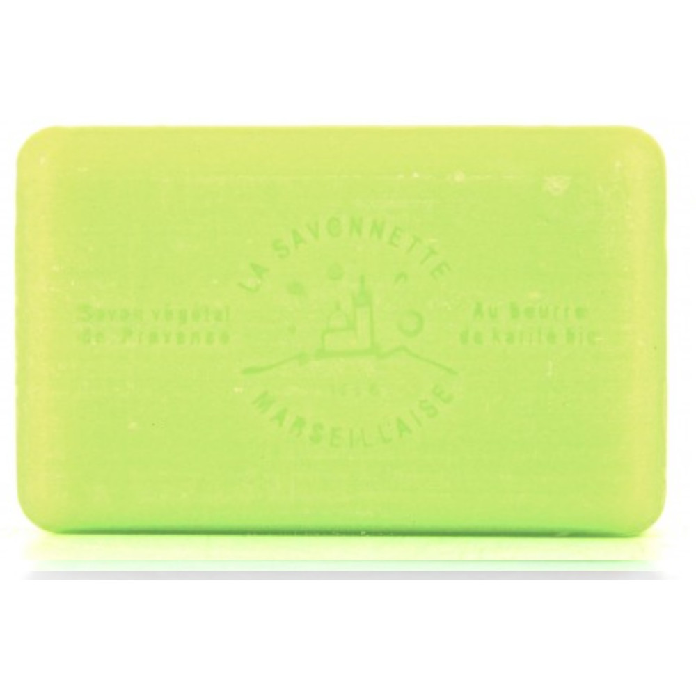 Savon de Marseille au citron vert 125g au beurre de karité - Savon au parfum d'agrumes rafraîchissant - Nourrit et hydrate la peau - Les savons parfumés de Marseille sont à base d'huile de palme (palmate de sodium, palmiste de sodium), qui régénère l'épiderme, possède des propriétés antibactériennes et combat les radicaux libres, ralentissant ainsi le vieillissement cutané.
