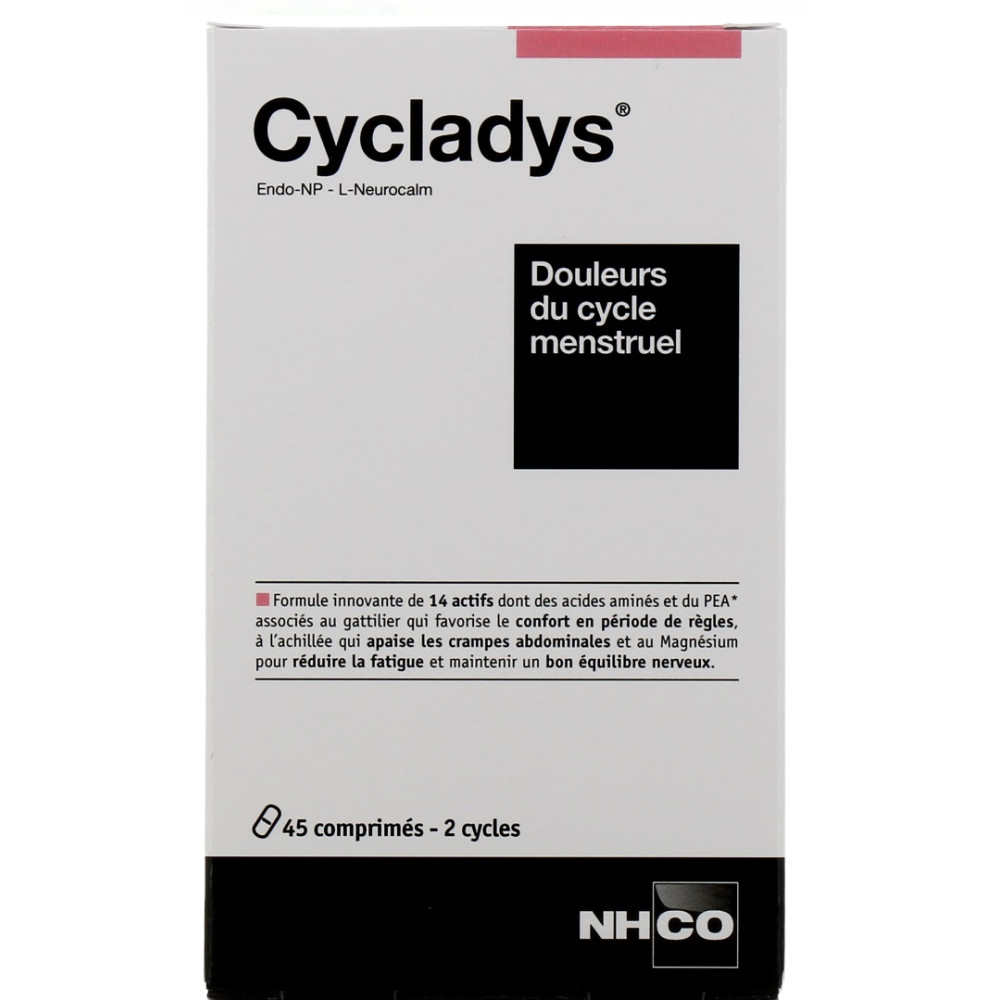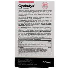 Cycladys est un complément alimentaire développé pour les douleurs du cycle menstruel, il renferme une formule innovante de 14 actifs pour favoriser le confort en période de règles - Réservée à l'adulte et à l'adolescent à partir de 12 ans - Il est indiqué de commencer la prise 5 jours avant les règles, puis de continuer sur une durée de 1 à 3 jours jusqu'à disparition des gênes ressenties.