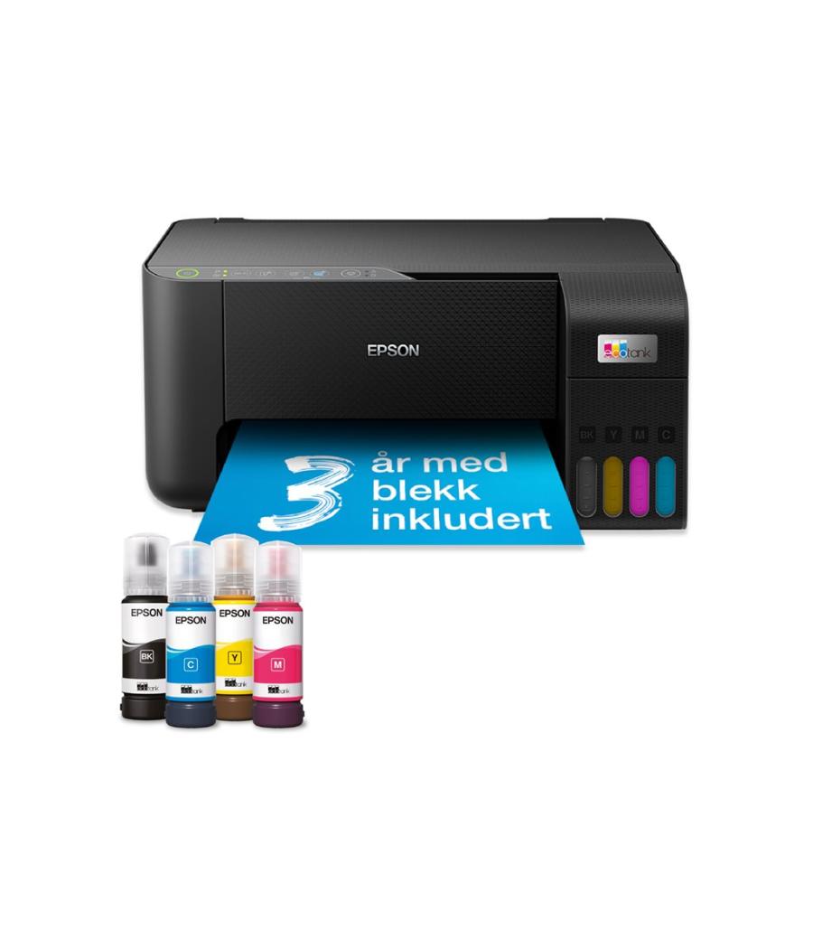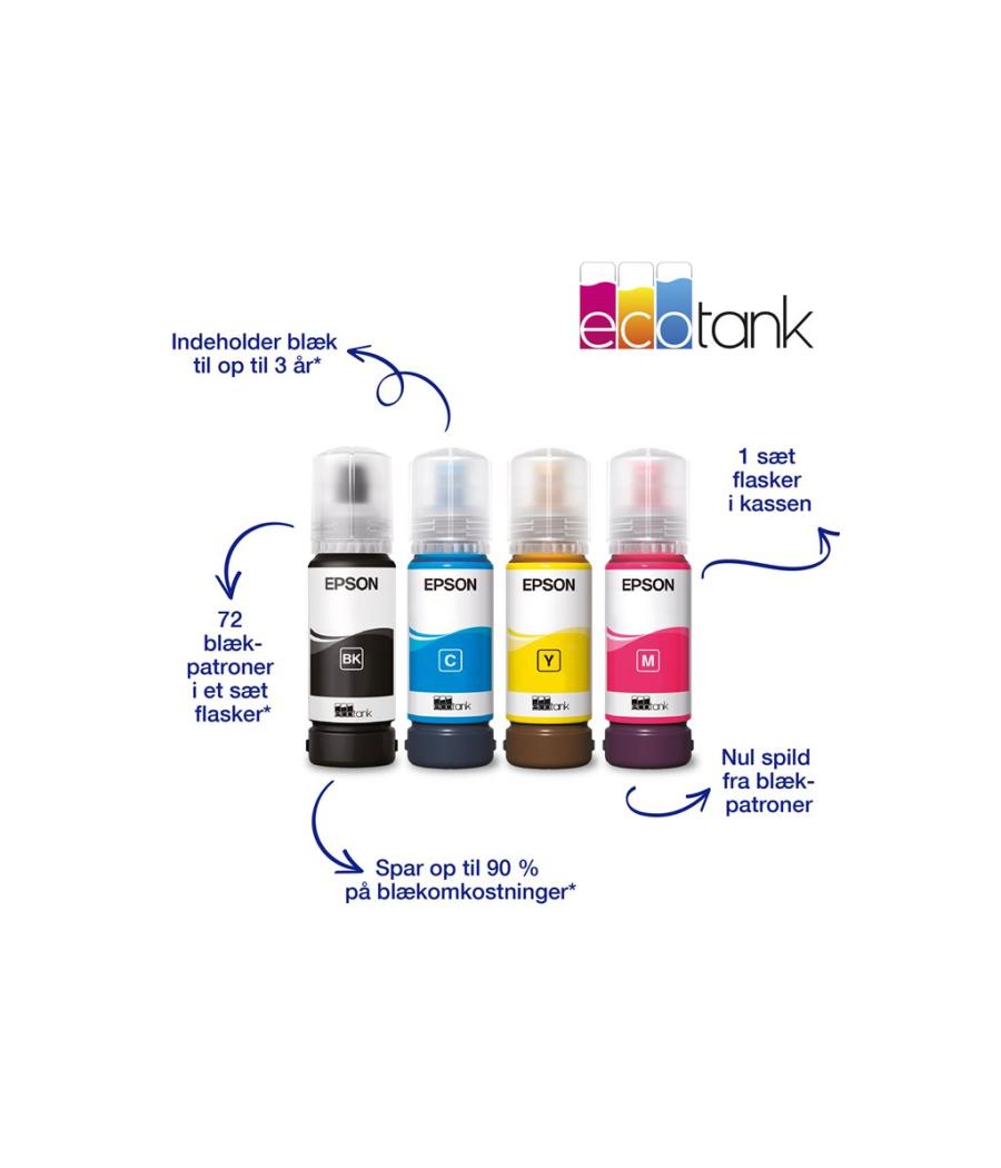 Imprimante multifonction jet d’encre couleur (impression, copie, scan) - Format max : A4 - Vitesse : 24 ppm noir, 15,5 ppm couleur - Résolution impression : 1200 × 600 dpi - Scanner CIS : 1200 × 1200 dpi - Connectivité : Wi-Fi, USB - Bac papier : 250 feuilles - Fonctions : duplex automatique, impression mobile, impression photo, cloud - Écran : intégré - Couleur : blanche - Dimensions : 39,9 × 41 × 25,4 cm - Poids : 11,6 kg - Cartouches : encres séparées (tanks / MegaTank) - Inclus : tous les consommables de démarrage - EAN : 4549292240290.