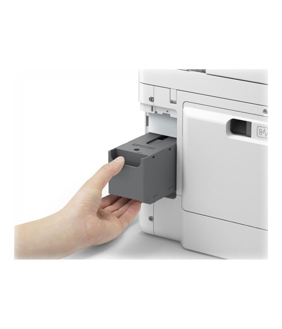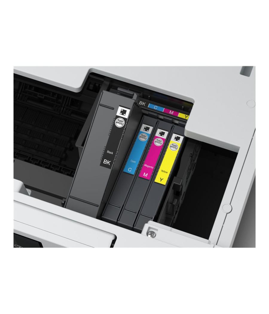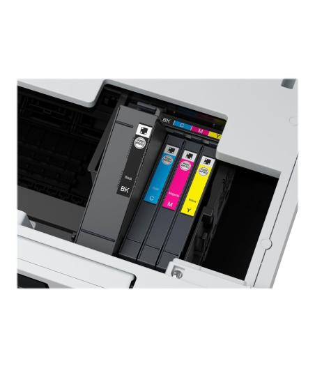 Imprimante multifonction jet d’encre couleur (impression, copie, scan) - Format max : A4 - Vitesse : 24 ppm noir, 15,5 ppm couleur - Résolution impression : 1200 × 600 dpi - Scanner CIS : 1200 × 1200 dpi - Connectivité : Wi-Fi, USB - Bac papier : 250 feuilles - Fonctions : duplex automatique, impression mobile, impression photo, cloud - Écran : intégré - Couleur : blanche - Dimensions : 39,9 × 41 × 25,4 cm - Poids : 11,6 kg - Cartouches : encres séparées (tanks / MegaTank) - Inclus : tous les consommables de démarrage - EAN : 4549292240290.