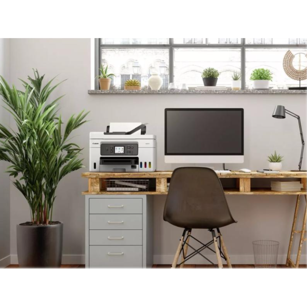 | Imprimez de gros volumes de documents professionnels de haute qualité tout en réalisant d'importantes économies sur le coût par page et le coût total de possession grâce à cette imprimante MegaTank MAXIFY GX 4-en-1 rechargeable et facile à utiliser, équipée d'un chargeur automatique de documents. | |