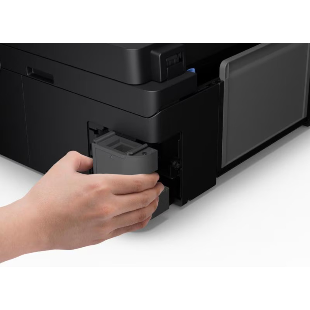 Ce nouveau modèle EcoTank est plus compact et simple d'utilisation que jamais. Ses réservoirs en façade sont conçus pour des recharges faciles et les bouteilles ont été mises au point de façon à empêcher toute erreur de remplissage des couleurs. Grâce à l'affichage du niveau de l'encre en façade, il est facile de savoir quand une recharge est nécessaire.