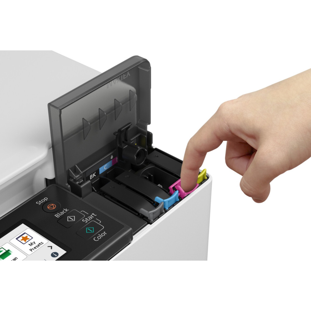 Imprimante multifonction jet d’encre couleur (impression, copie, scan) - Format max : A4 - Vitesse : 24 ppm noir, 15,5 ppm couleur - Résolution impression : 1200 × 600 dpi - Scanner CIS : 1200 × 1200 dpi - Connectivité : Wi-Fi, USB - Bac papier : 250 feuilles - Fonctions : duplex automatique, impression mobile, impression photo, cloud - Écran : intégré - Couleur : blanche - Dimensions : 39,9 × 41 × 25,4 cm - Poids : 11,6 kg - Cartouches : encres séparées (tanks / MegaTank) - Inclus : tous les consommables de démarrage - EAN : 4549292240290.