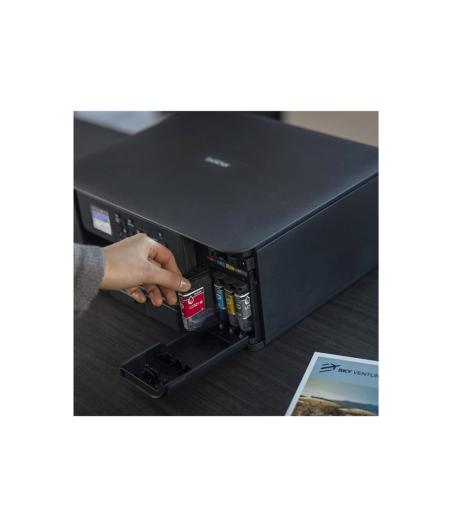 Imprimante multifonction jet d’encre couleur (impression, copie, scan) - Format max : A4 - Vitesse : 24 ppm noir, 15,5 ppm couleur - Résolution impression : 1200 × 600 dpi - Scanner CIS : 1200 × 1200 dpi - Connectivité : Wi-Fi, USB - Bac papier : 250 feuilles - Fonctions : duplex automatique, impression mobile, impression photo, cloud - Écran : intégré - Couleur : blanche - Dimensions : 39,9 × 41 × 25,4 cm - Poids : 11,6 kg - Cartouches : encres séparées (tanks / MegaTank) - Inclus : tous les consommables de démarrage - EAN : 4549292240290.