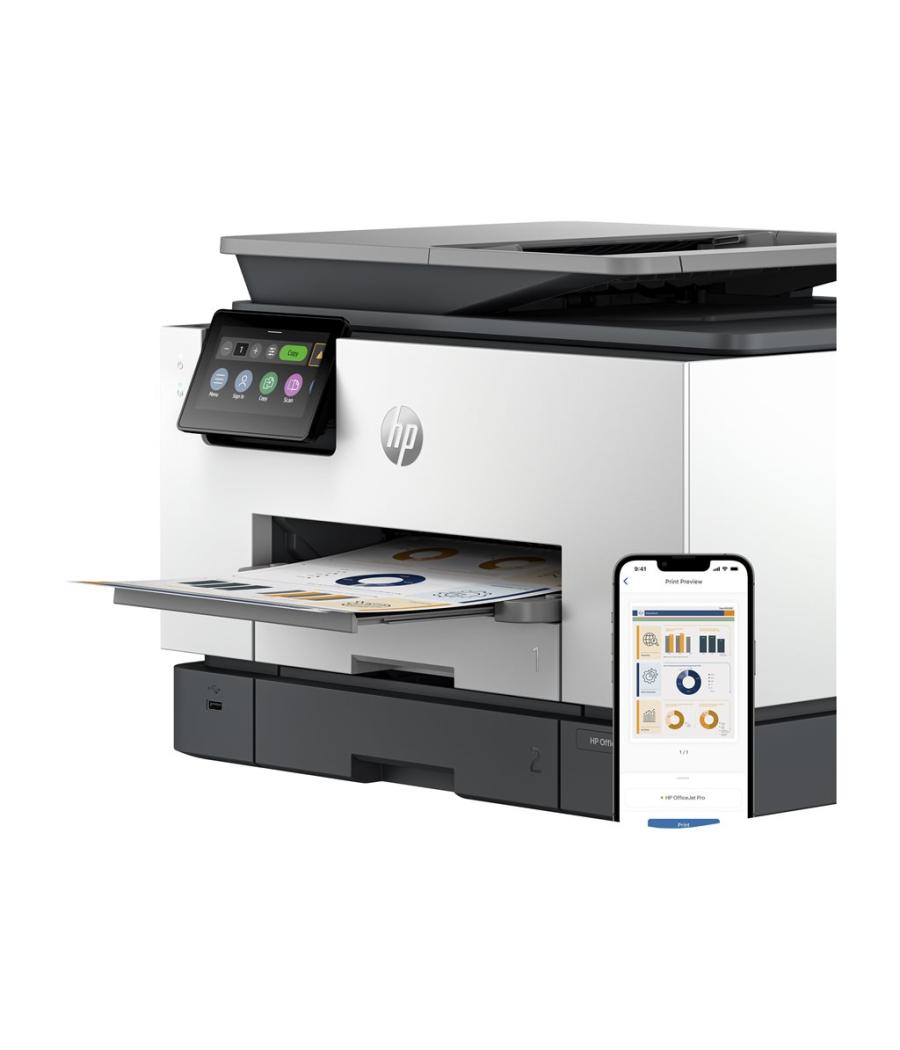 HP Officejet Pro 9130b All-in-One - Imprimante multifonctions - couleur - jet d'encre - Legal (216 x 356 mm) (original) - A4/Legal (support) - jusqu'à 23 ppm (copie) - jusqu'à 25 ppm (impression) - 250 feuilles - 33.6 Kbits/s - USB 2.0, LAN, hôte USB, Wi-Fi(ac)