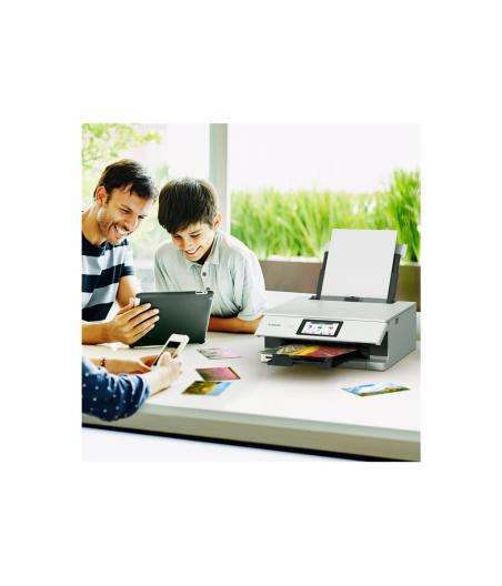 Imprimante multifonction jet d’encre couleur (impression, copie, scan) - Format max : A4 - Vitesse : 24 ppm noir, 15,5 ppm couleur - Résolution impression : 1200 × 600 dpi - Scanner CIS : 1200 × 1200 dpi - Connectivité : Wi-Fi, USB - Bac papier : 250 feuilles - Fonctions : duplex automatique, impression mobile, impression photo, cloud - Écran : intégré - Couleur : blanche - Dimensions : 39,9 × 41 × 25,4 cm - Poids : 11,6 kg - Cartouches : encres séparées (tanks / MegaTank) - Inclus : tous les consommables de démarrage - EAN : 4549292240290.