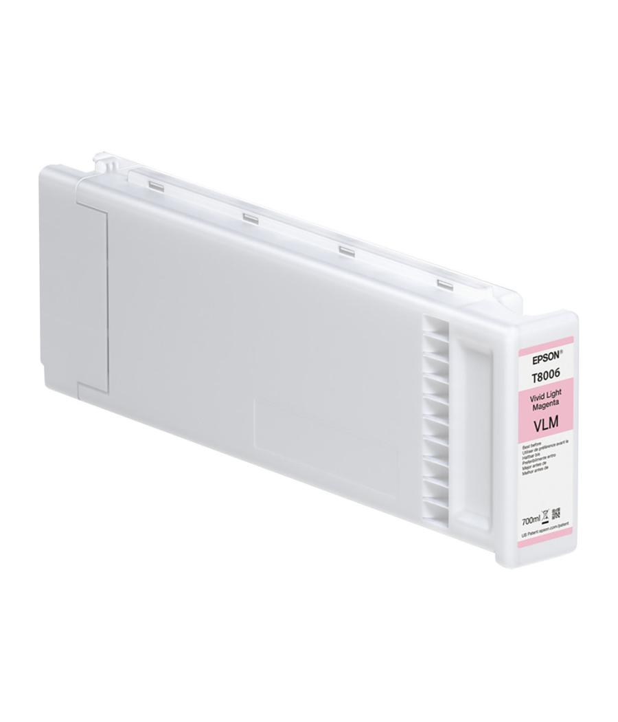 Cartouche d'encre Epson T8006 - 700 ml - Magenta vif clair - original - pour Sure Color SC-P10000, SC-P20000. Description du produit. La cartouche d'encre T8006 d'Epson, un élément clé dans le domaine des consommables pour imprimantes, se distingue par sa capacité substantielle de 700 ml, conçue pour répondre aux besoins d'impression à haut volume sans remplacements fréquents. Ce produit original Epson, doté de la technologie avancée Epson Ultra Chrome PRO, est conçu pour fournir des résultats d'impression de haute qualité. Des couleurs vives et réalistes aux lignes claires et nettes, la T8006 est le choix idéal pour les professionnels qui recherchent des résultats d'impression fiables et de haute qualité.