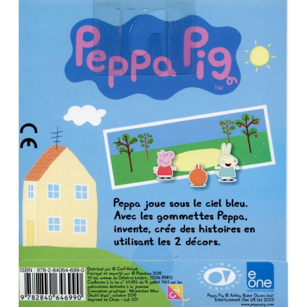 Peppa joue sous le ciel bleu. Avec les gommettes Peppa, invente, crée des histoires en utilisant les 2 décors.