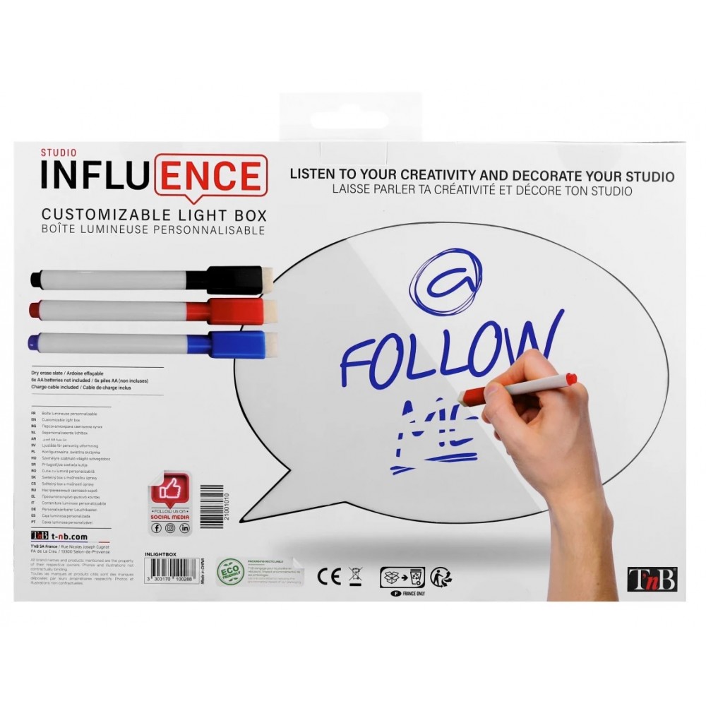 Idéal pour les vloggers ou en simple atout de décoration, cette bulle lumineuse offre une touche de créativité à votre studio. Constituée d'une ardoise, vous pouvez écrire et effacer à l'infini. Votre inspiration n'a pas de limite : écrivez, effacez, dessinez et illuminez votre imagination ! La bulle est fournie avec trois feutres effaçables : un feutre bleu, un feutre rouge et un feutre noir, pour colorer vos idées.