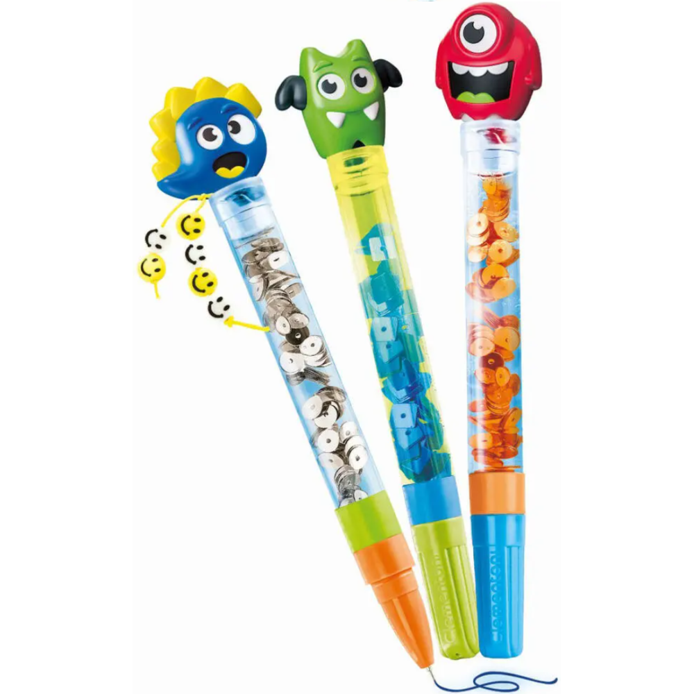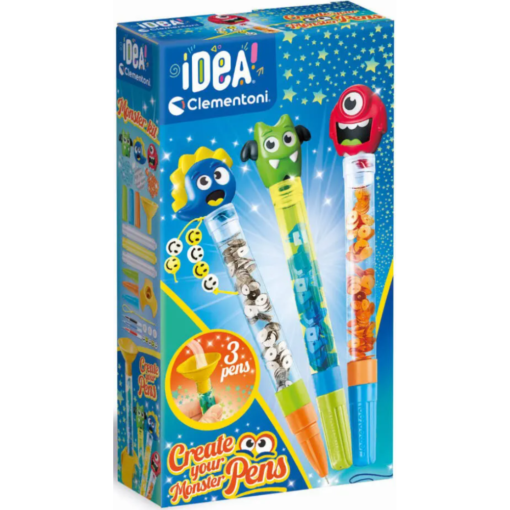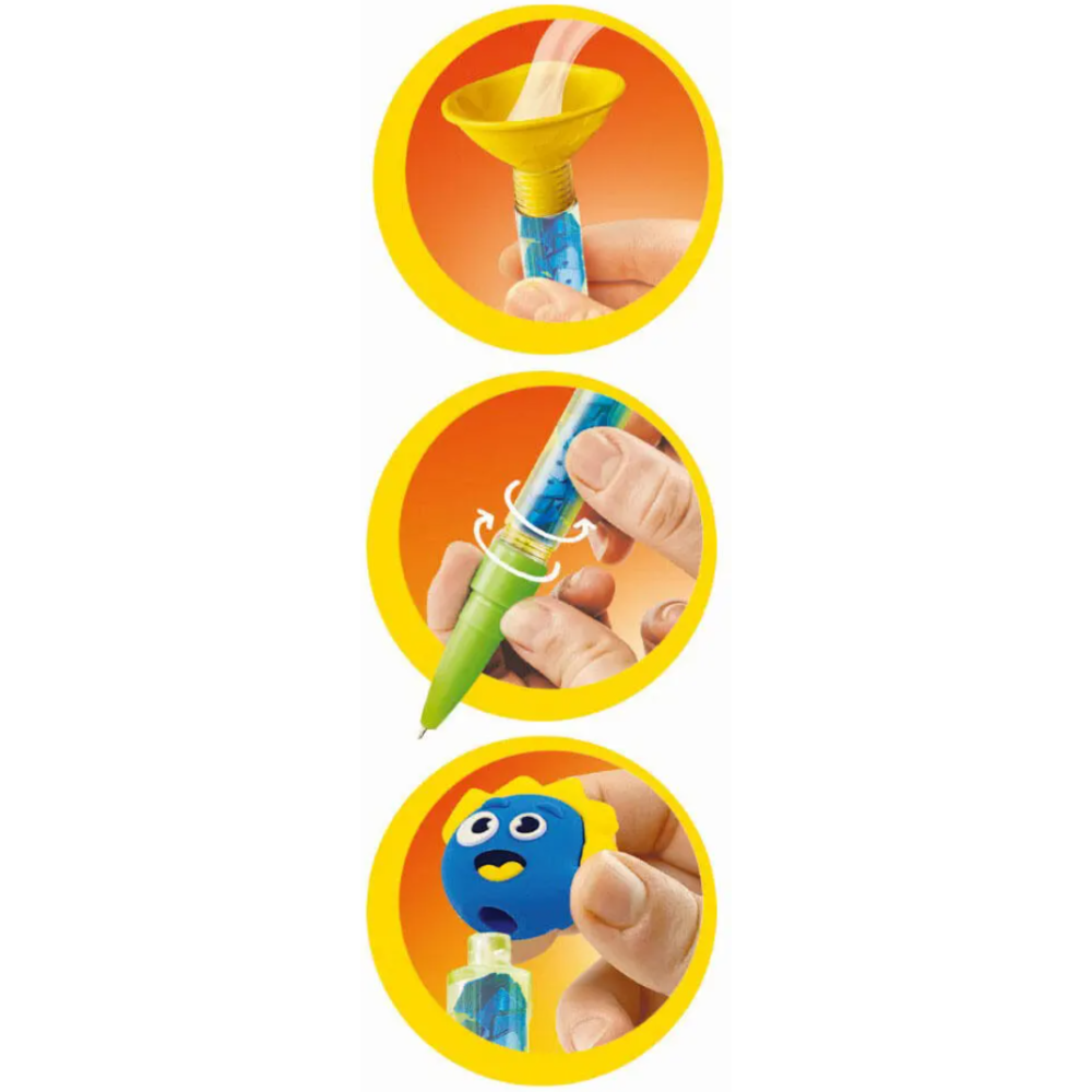 Jeu crée tes stylos présenté sous forme de mini atelier pour créer et personnaliser de magnifiques stylos - Fourni en pack de 3 stylos à créer en choisissant et en assemblant le capuchon, les embouts, la mine et le corps du stylo - Offre la possibilité de personnaliser en ajoutant des décorations sur le haut du stylo et dans le corps - Conditionné dans un carton de 1020 grammes - A jouer dès l’âge de 6 ans.