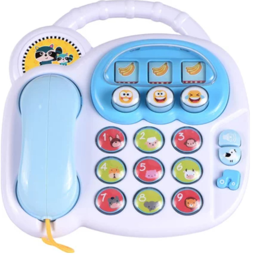 Téléphone d’activités animaux - Appuie sur les touches pour entendre le bruit des animaux et des sonneries ! Avec 15 effets sonores et 8 mélodies. Appuie sur les 3 boutons (du haut) pour voir les images tourner - Les sons amusants et la musique du téléphone font appel à la fantaisie des tout-petits - Pratique avec poignée de transport.
