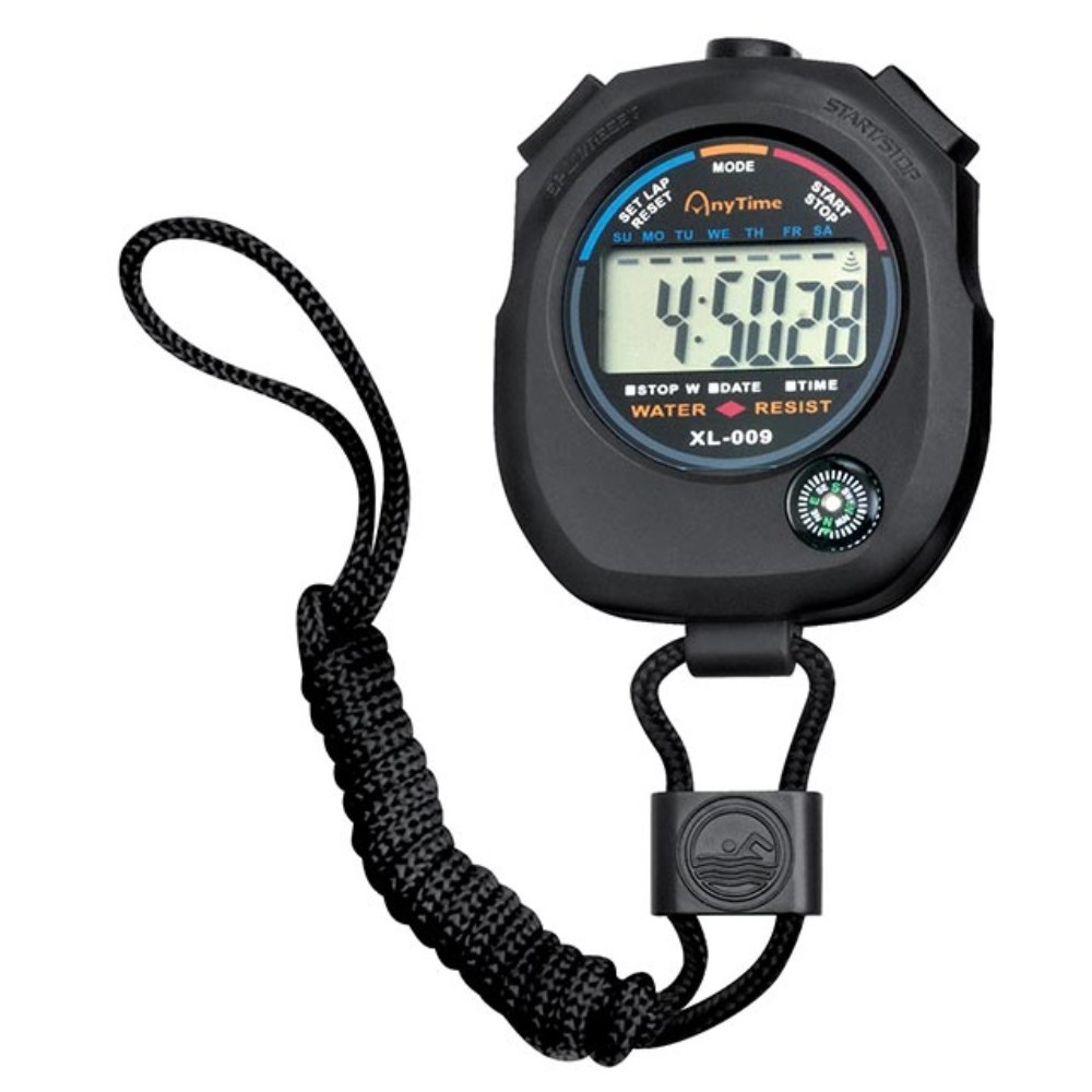 Ce chronomètre de couleur noir est digital et indique la date et l'heure. Il possède également un mode alarme et une horloge. Extrêmement précis, il mesure au 1/100 de seconde. Il comporte une boussole intégrée et est vendu avec une pile et un cordon. Il est également étanche pour une utilisation à la piscine et vous accompagnera partout pour mesurer les performances de nos futurs champions.