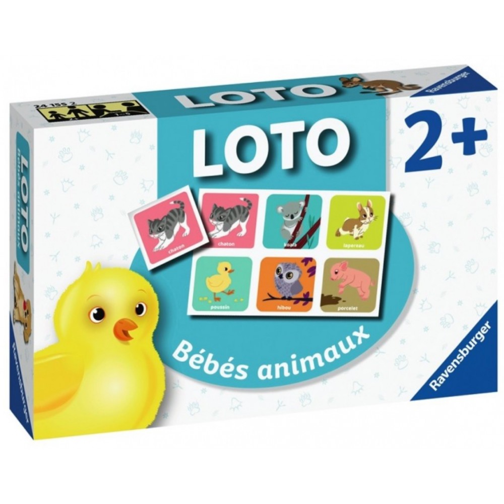Le loto, un grand classique très apprécié des enfants. Un loto avec de belles illustrations de bébés animaux. L'enfant complète sa planche de loto en identifiant les images identiques, et développe ainsi sa capacité d'observation et d'association. Le premier qui a complété sa planche a gagné. La boite contient 5 planches et 30 images.