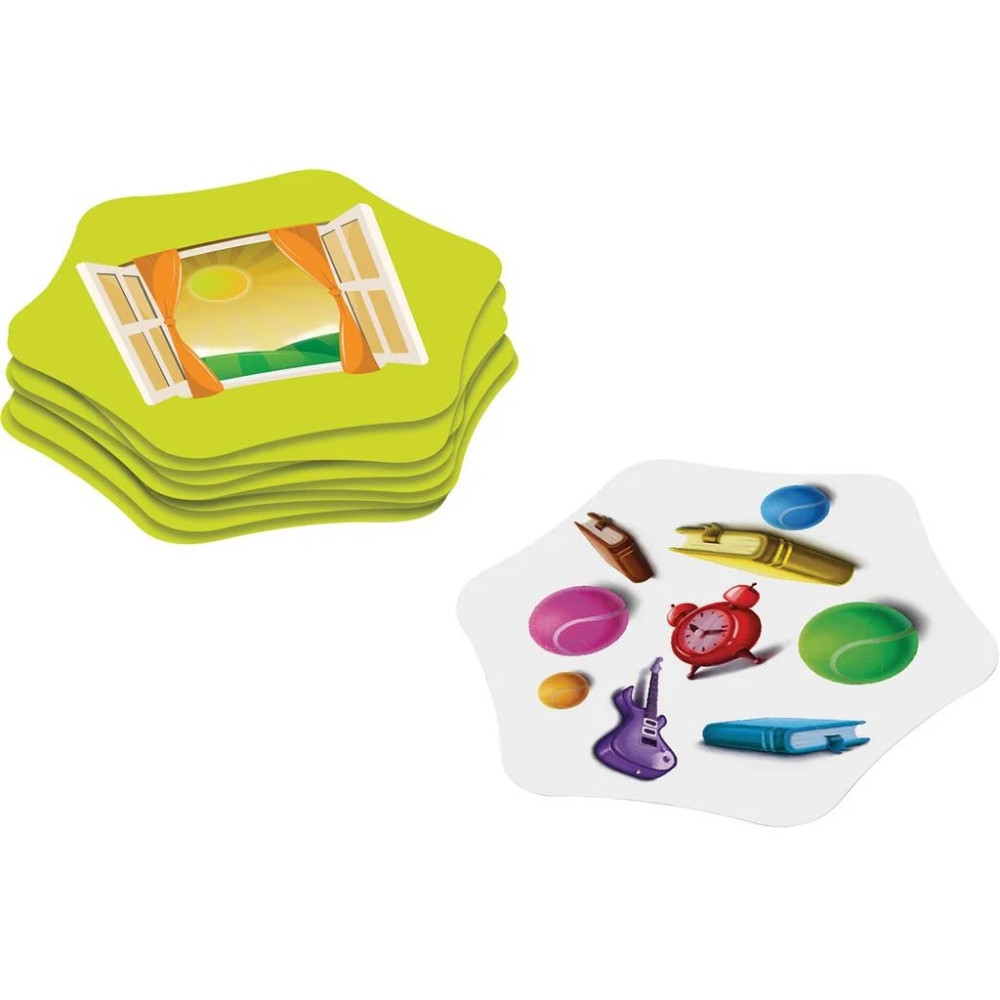 Retournez une carte et soyez le premier à repérer l’objet ou la couleur en surnombre - Et gare aux symboles qui modifie les paramètres !